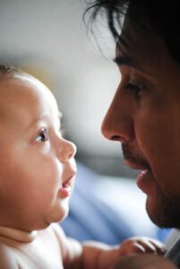 Make eye contact often: Hold your baby close and let them study your face.